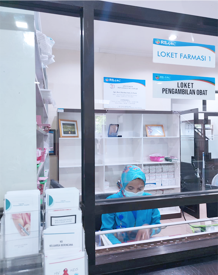 Layanan Farmasi di Rumah Sakit AMC hadir untuk memastikan ketersediaan obat-obatan yang lengkap, aman, dan berkualitas sesuai dengan resep dokter. Dikelola oleh apoteker profesional dan berpengalaman, kami memberikan pelayanan yang cepat, akurat, serta informasi penggunaan obat yang jelas dan tepat. Selain itu, kami juga memberikan layanan antar obat, sehingga pasien tidak perlu menunggu antrian pengambilan obat dengan waktu yang lama. Komitmen kami adalah memberikan pelayanan farmasi yang terpercaya demi mendukung kesembuhan dan kenyamanan Anda selama menjalani perawatan.