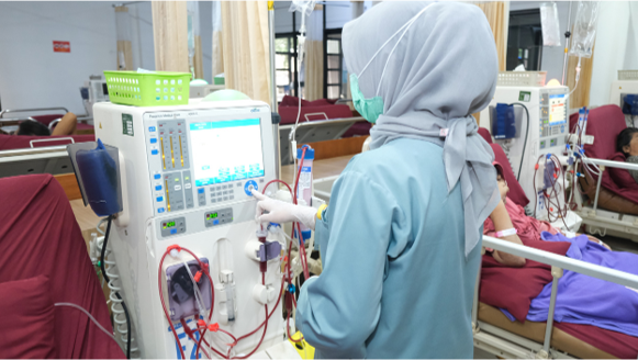 Layanan Dialisis di Rumah Sakit AMC dirancang khusus untuk pasien dengan gangguan fungsi ginjal yang membutuhkan terapi cuci darah secara rutin dan aman. Dengan fasilitas yang modern, lingkungan yang nyaman, serta didukung oleh tim medis dan perawat terlatih, kami berkomitmen memberikan pelayanan hemodialisis yang berkualitas tinggi. Proses dialisis dilakukan dengan pengawasan ketat untuk menjaga stabilitas kondisi pasien dan mencegah komplikasi. Kami memahami pentingnya perawatan yang berkesinambungan, dan karena itu, kami hadir sebagai mitra terpercaya dalam mendukung kualitas hidup pasien dengan penyakit ginjal kronis.
